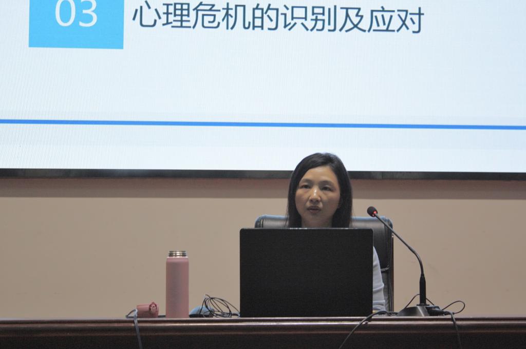 为全面普及心理健康知识,进一步增强我院学生心理健康防护意识和心理调节能力,切实提升我院学生的心理素质。10月25日晚,我院研究生工作部举办2023-2024学年第一学期研究生心理健康系列讲座,学校心理健康中心孙维燕老师在三号报告厅为2023级硕博学生带来主题为“心理危机的识别与应对”的心理健康教育讲座,学院全体研究生新生、本科生各班心理委员、班长以及学生网格员参加此次讲座。
