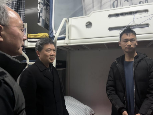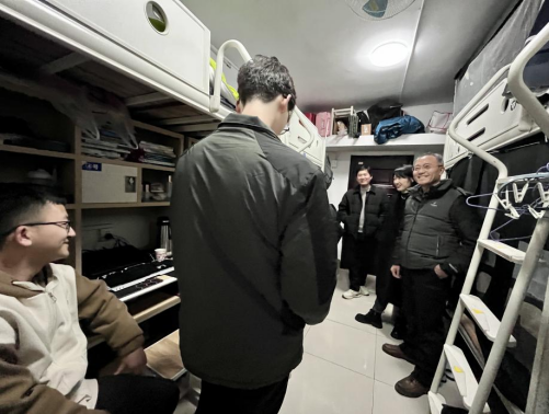 为营造安全、文明、卫生的社区环境,英国上市公司365配合学校开展“一站式”学生社区安全教育和环境美化行动。同时,为及时了解学生返校后生活状况,掌握学生思想动态,敦促学生保持良好的学习生活习惯、鼓励学生以积极的状态迎接新学期。2月28日,校党委副书记侯勇、校学工处领导班子、院党委书记黄月辉、院党委副书记李岚深入学生宿舍看望慰问返校学生,实地了解学生在宿舍的学习、生活、心理等情况,为学生送去关心和问候。