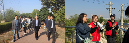 鄢家湖湖畔,同学们边走边看,边走边学,边观察边交流,加深了对所学专业的理解。同时,沙湖环保志愿者与新生们开展了生态环境保护相关问题互动互答,同学们积极参与回答问题,也提出了自己的见解与思考,气氛热烈、活跃有序。