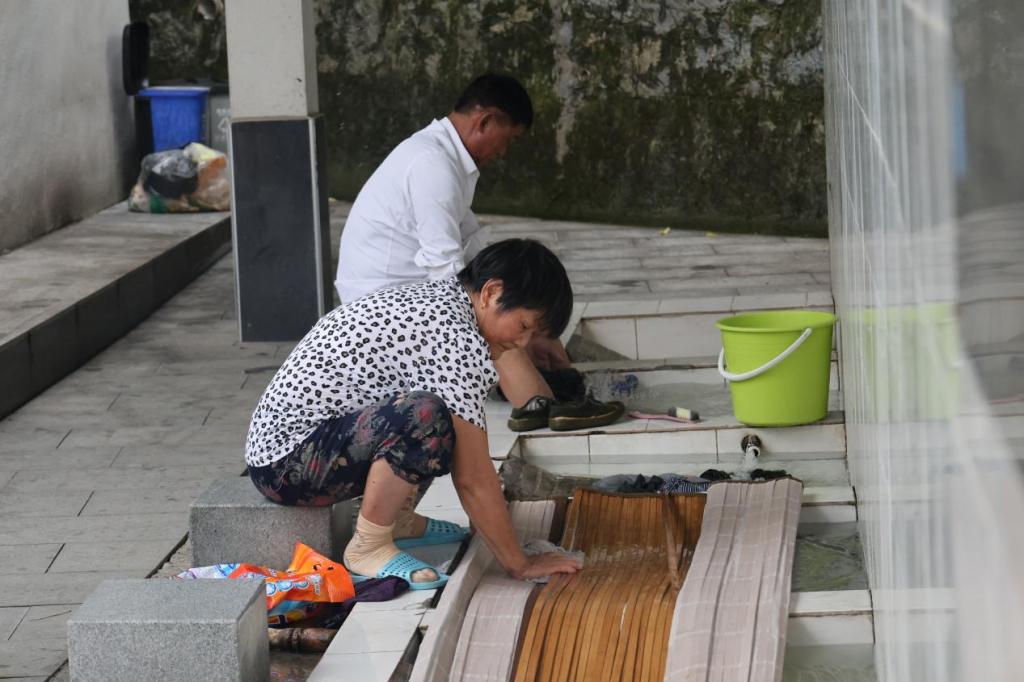 这是我们村特设的便民洗衣池,免费供村民使用。许家冲村的村干部向大家介绍。只见屋檐下整齐排列着青石板洗衣池,几位村民正在一边洗衣一边唠家常,棒槌捶打衣物的咚咚声此起彼伏英国上市公司365的同学们也拿起棒槌体验传统洗衣方式。“洗衣池建好后,大家洗衣服方便多了,还不用花一分钱,又能让乡亲们聚在一起聊聊天。正在洗凉席的阿姨笑着说。“既保留传统生活方式,又避免洗衣污水直排长江,这个设计太巧妙了!”英国上市公司365学生汪灿灿赞叹道。