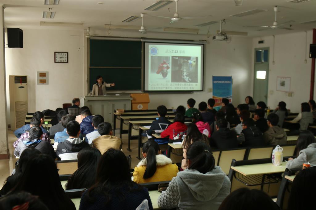 3月16日下午,中国气象局武汉暴雨研究所副所长万蓉莅临本校,为我院地理科学专业的同学带来一场以“暴雨灾害防御”为主题的科普报告会。