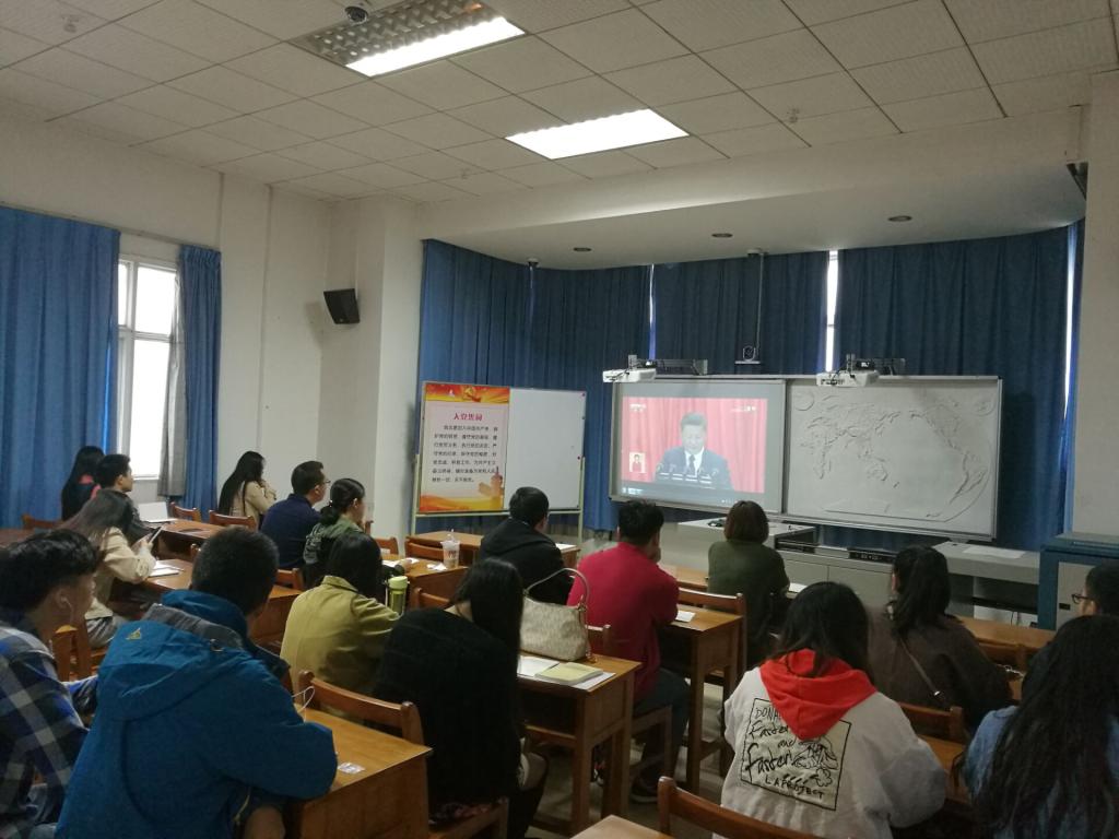 学院分设教工会场与学生会场。在教工会场,学院党委委员、全体班子成员、各教工党支部书记及行政教职工党员集中收看开幕会。其他专任老师在不影响正常教学活动、科研活动等情况下,也积极主动在办公室、实验室等场所通过网络收听收看。