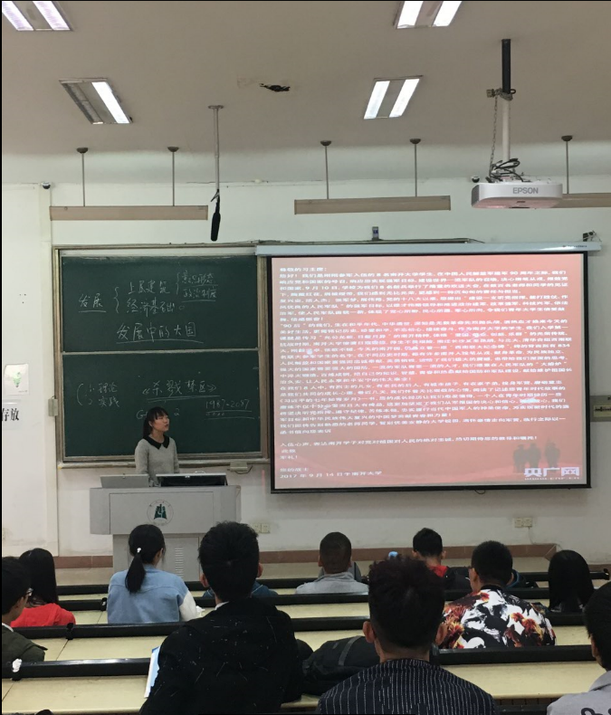 16地理科学班级,伴随着团支书何新洁洪亮的声音诵读习近平总书记回信内容,同学们的热情也瞬间被点燃。习近平总书记给南开入伍大学生的回信,就像一支火把,在黑夜中照亮了广大学生前进的路途,使他们更加坚信未来会愈来愈美好。弘扬大学生参军入伍,就是对爱国主义情怀的进一步加深。