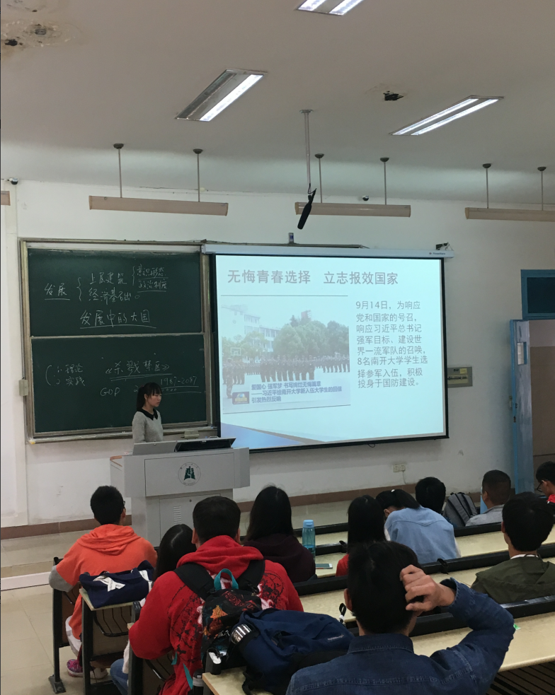 习近平总书记923日给南开大学8名新入伍大学生回信,在南开大学广大师生中引起强烈反响。昨日下午,我院各班纷纷开展了以“爱国心 强军梦,书写绚烂无悔篇章”为主题的团日活动,集中学习贯彻习近平总书记回信精神。