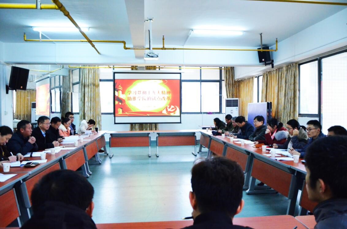 12月14日下午,校党委常委、纪委书记檀坤华、校纪委副书记谢鉴深入联系学院,检查督导学院基层党组织学习贯彻十九大精神的进展情况,面向与会师生进行学习贯彻十九大精神的宣讲座谈。英国上市公司365、材料科学与工程学院师生代表40余人一起汇报、畅谈了学习十九大精神的体会。