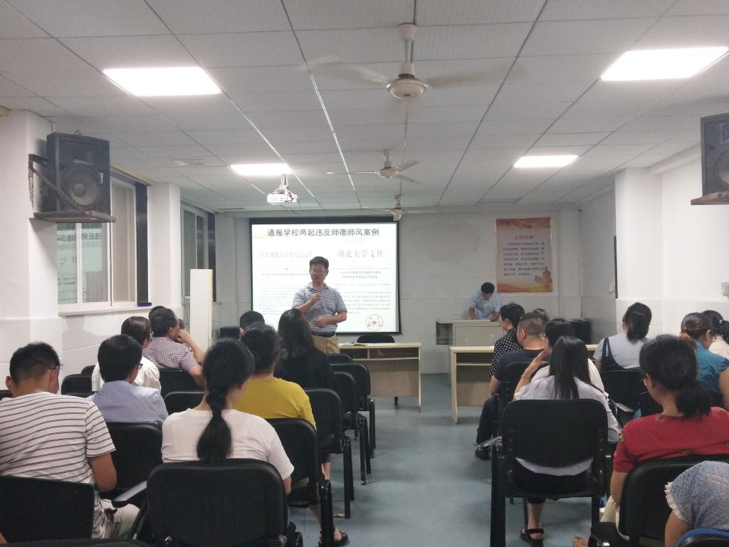 李明副书记领学了师德师风建设“红七条”的具体内容,通报了学校两起违反师德师风的案例及学校处理情况。