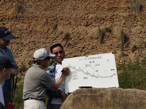 7月15日上午,实习队伍马不停蹄地从丹江口赶到郧阳区。首先来到卧龙岗村,李长安教授为大家介绍了河流冲积物、阶地以及汉江河流的地貌。随后,实习队伍来到南水北调中线工程的库区移民村—柳陂镇卧龙岗社区。通过武汉大学钟赛香老师的讲解以及各小组的走访调查,大家对移民、新农村假设与脱贫的主要进展和问题有了一定了解。下午,实习队伍抵达青龙山恐龙蛋化石公园,在参观学习的过程中,了解了郧阳区恐龙蛋化石的发现历程、当地政府的保护措施以及恐龙的研究历史、灭绝原因假说和蛋化石的研究意义。返程途中,团队一行人在燕子崖驻足,李长安教授为大家绘制汉江河流阶地剖面示意图,并详细教授绘图步骤和要领。晚上,中国地质大学(武汉)陈昆仑教授及河南大学王青利教授分别作学术报告《人文地理学与城乡规划—我们身边的实践》、《关于斑岩铜矿研究的几点认识》。报告结束后大家展开积极讨论。