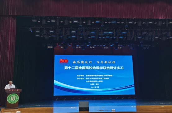 7月29日上午8点,开幕式在鲁东大学学术交流中心正式举行。开幕式上,鲁东大学校长王庆、教育部教学指导委员会副主任武汉大学教授刘耀林、教育部教学指导委员会委员陕师大副校长董治宝教授、教育部教学指导委员会委员首师大副校长李小娟教授、教育部教学指导委员会委员哈师大副校长臧淑英教授、教育部教学指导委员会委员北京联合大学院长张宝秀教授先后致辞,鲁东大学资源与环境工程学院曾琳副教授介绍实习行程和实习内容。最后,教育部教学指导委员会副主任华东师大教授郑祥民作动员报告。