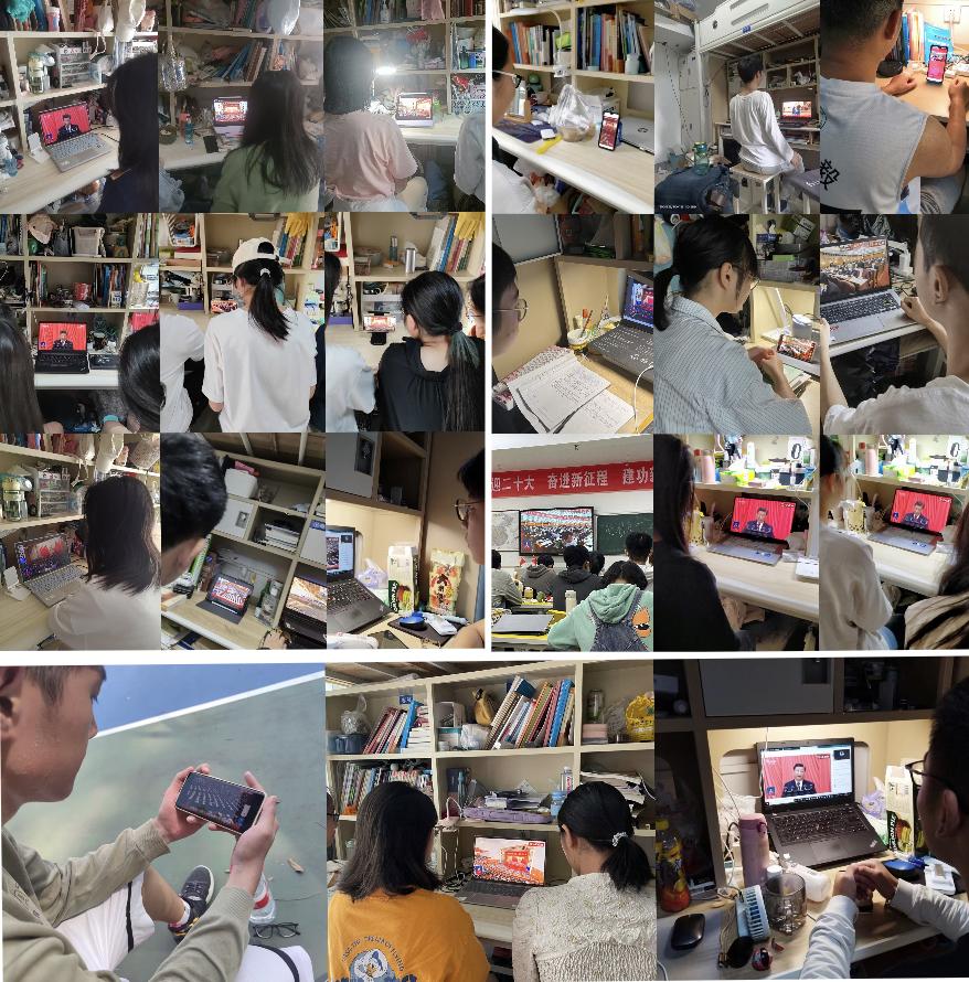 此外,学院组织18个本科生班级及8个研究生班级共计1200余人通过集中或分散观看的形式同步收看了党的二十大开幕会。
