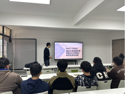 为吸引优秀生源报考,扎实推进研究生教育,助力学校“双一流”建设,2月28日下午,我院分管研究生工作副院长刘杰携环境工程专业教师蔡伟、研究生秘书吴思一行前往湖北理工学院开展2025年研究生招生宣传。宣讲会由湖北理工学院环境科学与工程学院辅导员梅桂仪老师主持,刘杰教授作报告,近40余名学生参会。