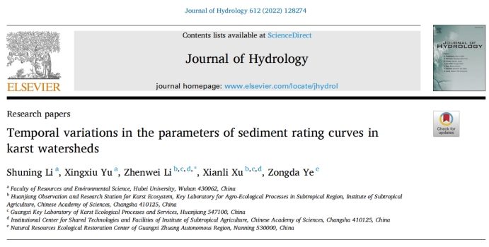 近日,我院研究生李姝宁在中科院一区Top期刊《Journal of Hydrology》发表题为“Temporal variations in the parameters of sediment rating curves in karst watersheds”的科研论文。该研究分析了水沙关系曲线(SRC)参数的时间变化,应用偏最小二乘结构方程模型(PLS-SEM)解耦了气候变化和植被动态对水沙关系曲线(SRC)参数的影响。