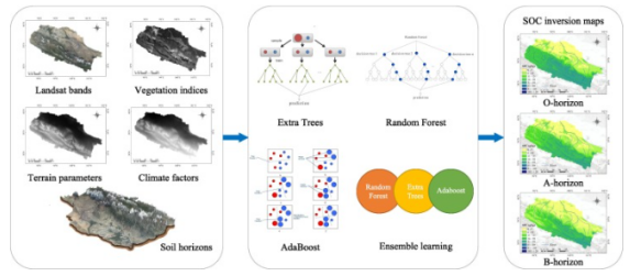 估算土壤有机碳含量的空间分布对评价生态系统功能和建立全球气候变化模型具有至关重要的意义。传统有机碳含量估算大多数采用固定土壤深度的模式,然而相同深度的土壤并不总是属于相同的土层,导致其结果的准确度存在局限。本研究充分考虑土壤土层的特性,耦合集成学习和土壤多元变量因子,对黑河流域中上游多个土层的土壤有机碳含量进行了智能感知与数字制图。该研究成果得到了国家重点研发计划、国家自然科学基金、湖北省重点研发计划和区域开发与环境响应湖北省重点实验室开放基金等资助。(撰稿:魏泽阳;校对:魏立飞 李可;审稿:梅新)