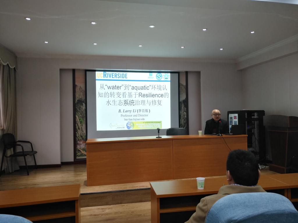 20181226日上午十点,美国人类生态研究院院士李百炼为我院师生做了题为《从“water”到“acquatic”环境认知的转变看基于Resilience的水生态系统治理与修复》的专题讲座。讲座由朱书景老师主持,部分老师和研究生共同参与。