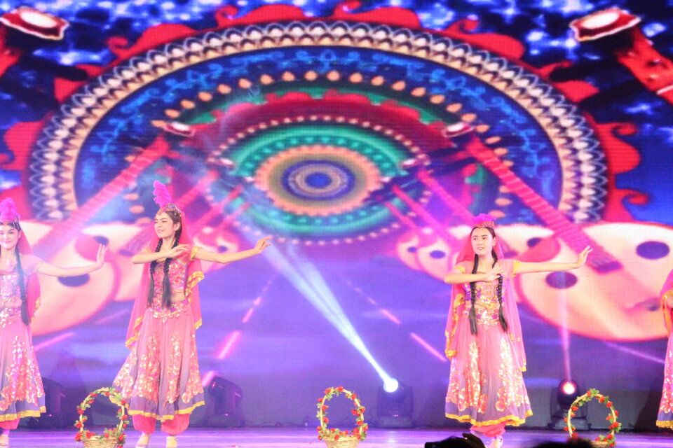 随后,来自院篮球队的五位女队员用充满青春活力的舞蹈《Hungry ball》瞬间点燃现场空气。充满激情的舞蹈之后,院志协同学表演的音乐剧《陪你度过漫长岁月》唤起许多观众对高三时的记忆,引发许多同学的共鸣,甚至让不少同学潸然泪下。随着台下一片荧光舞动,晚会来到第二篇章。院团委的同学带来的舞台剧《不负青春》则展现了见证新中国从“站起来”、“富起来”再到“强起来”的三代人的奋斗历程。父辈敢打敢拼的精神奋斗精神不仅为剧中迷惘的主角指明了人生方向,也引发了台下观众的思考。“没有追求和付出哪来的成功?只要为了梦想不服输 ,再苦也不停止脚步……”院学生会的同学们一支充满正能量的手语舞《没有什么不同》让许多正在备战考研的同学倍感慰藉。小品《碰瓷》、精彩有趣的“垃圾投进趣”环保游戏互动环节,不仅联系了我院的专业特色,同时也进一步向同学们传达了环保理念。2018级人文地理专业的维吾尔族同学们带来的维吾尔族特色舞蹈《天山舞韵》则带领观众来到独具风情的新疆,领略新时代各民族团结一心,共建美丽家园的美好画卷。