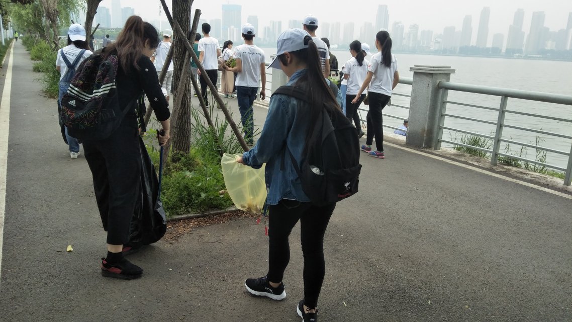 早上8点,志愿者们提着准备已久的夹子、垃圾袋等工具集体前往沙湖。众多志愿者被分成两组,浮岛维修组的志愿者们负责更新生态浮岛,将放置在雁桥旁的浮岛拖上岸边,并更换盆栽。另一组志愿者在沙湖绿道上仔细地捡拾垃圾,并将垃圾分类。令志愿者们倍受鼓舞的是附近许多居民也都积极响应了“世界地球日”的活动,其中有一位父亲带着自己的女儿与志愿者们一起拾捡垃圾,据了解他们已经参加了多次志愿活动。经过志愿者们一上午的努力,沙湖绿道变得更加整洁。最后志愿者们在一片欢声笑语中合影留念,“世界地球日”活动就此结束。