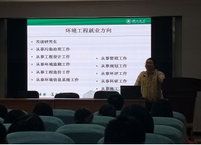 首先,各位老师都做了自我介绍并对新生表示欢迎,卢进登教授简单介绍了环境工程专业的发展历史等方面的知识。赵丽娅教授介绍了环工专业建设、近年的发展状况并送上了对新生的勉励与寄语。李玉华老师从综合导师制、专业课程设置、专业研究方向、专业教师等方面作了详细介绍,许峰老师补充介绍了综合导师制的相关要求。最后老师们和学生进行交流讨论。