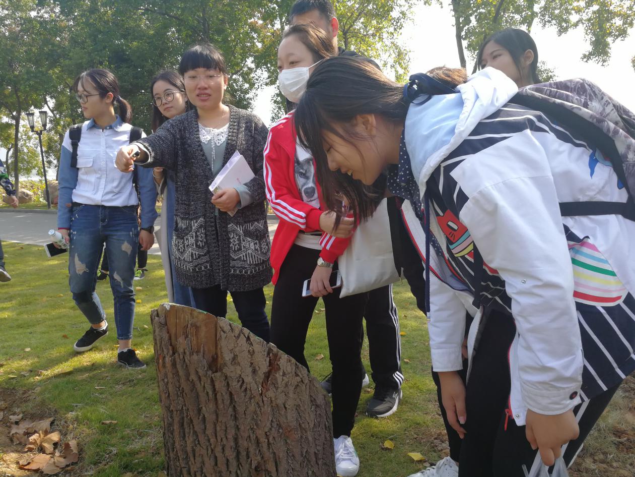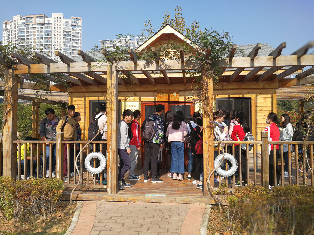 最后,在韩忠、陈昕两位老师的带领下,16城规班级参观了木屋展示区、儿童游乐区以及二十四节气景观区等规划区。“我觉得这里最让我欣赏的是它的环保理念,就比如这里的自然科普教育基地里面的书桌和凳子都是用废弃的轮胎做的,既有特色有很环保。”李慧同学在与老师的交流中说到。