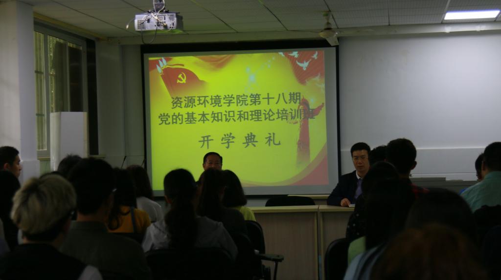 419日下午两点,我院第十八期党的基本知识和理论培训开学典礼于学院一楼会议室顺利举办。资环学院党委书记汪正祥、组织员彭惠楠以及党委副书记李明出席本次典礼。