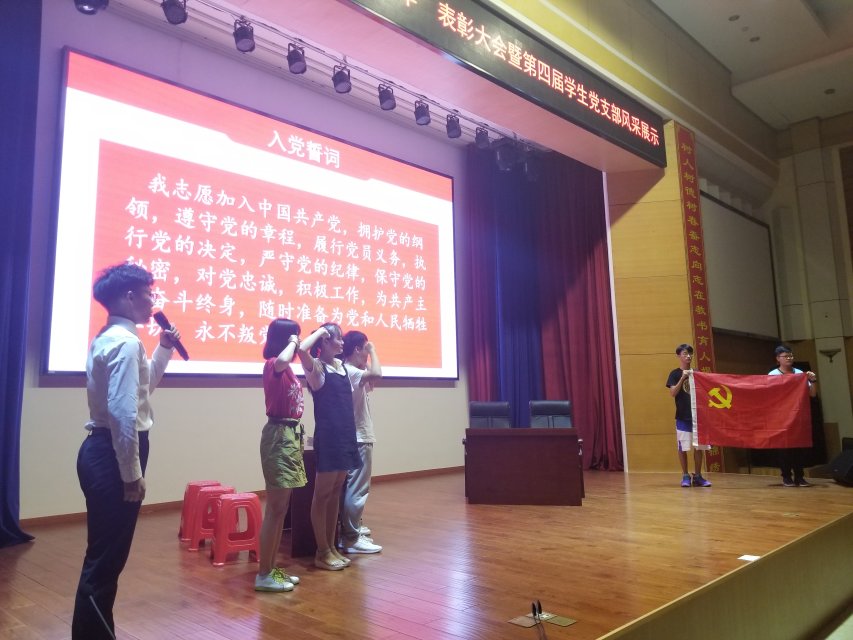 第四届学生党支部风采展示活动在阵阵掌声中拉开了帷幕,各个学生党支部纷纷用自己的形式表达了对党的热爱与崇敬。其中人文地理与城乡规划学生党支部通过重演经典红色话剧《红岩》,向同学们展现了共产党人对于信仰的忠贞和坚定;环境工程学生第一党支部的诗朗诵——《可爱的中国》,表达对于祖国母亲的满腔热忱。在风采展示的最后,地理信息科学学生党支部的康昆带领全体与会人员共同回顾了入党誓词。至此,英国上市公司365庆祝建党97周年表彰大会暨第四届学生党支部风采展示大会圆满结束。