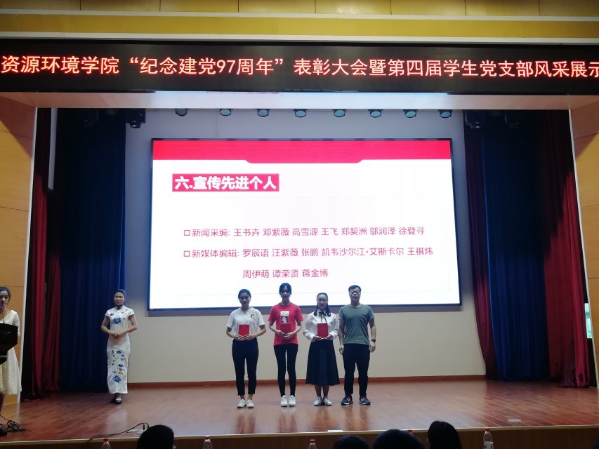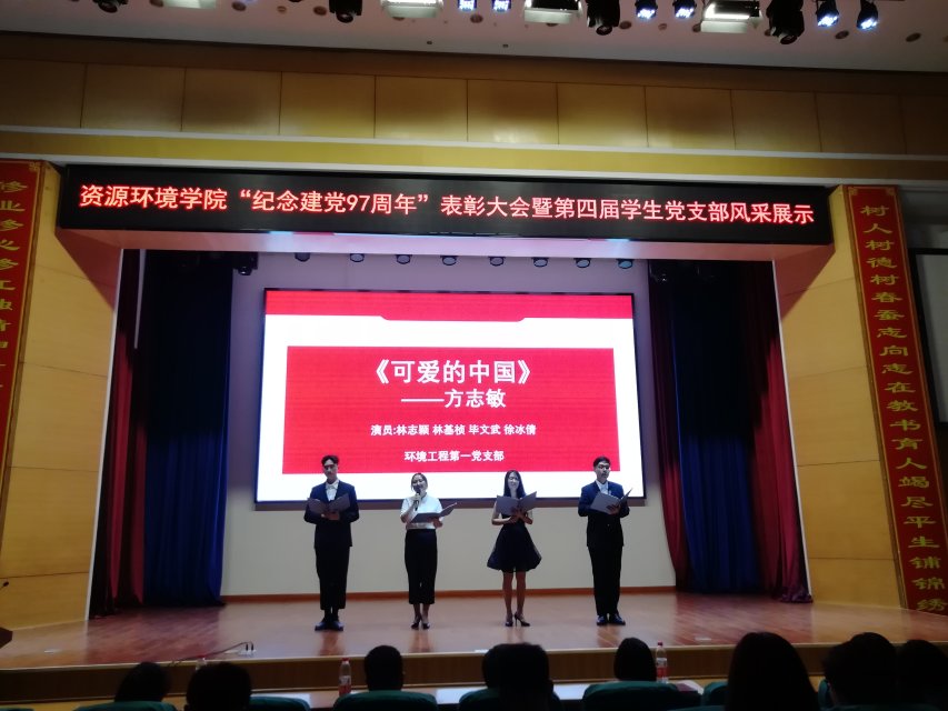 这次党支部风采展示活动,不仅增进了各支部的了解,也展现了新时代下的资环院大学生共产党员们的精神风貌,引导和呼吁同学们积极向党组织靠拢,不断深入学习党的相关理论知识,为党的建设努力奋斗!(通讯员:徐登寻 王书卉 照片来源:郑契洲 徐登寻 )